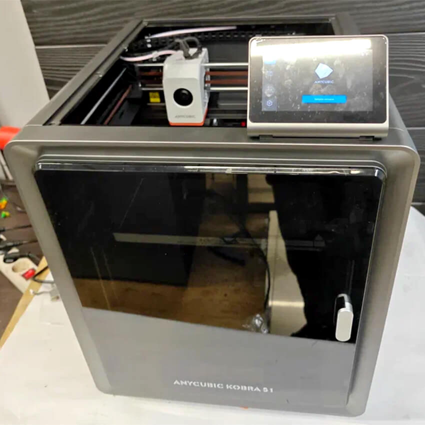 3D принтер Anycubic Kobra S1 Б/У в рабочем состоянии. Верхняя пластиковая крышка, передняя пластиковая дверца, корпус 3Д-принтера, подложка и магнитная пластина имеют незначительные механические повреждения в виде царапин и потертостей.