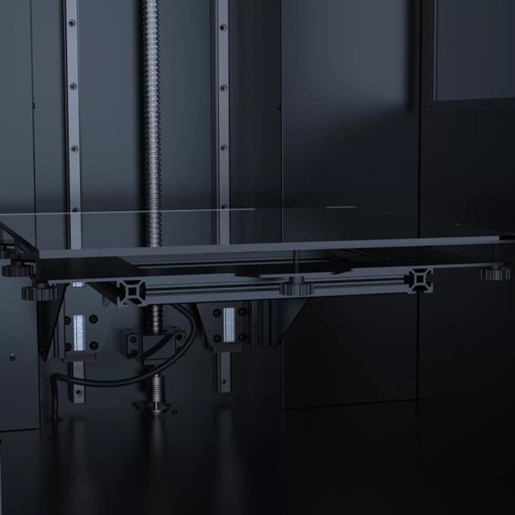 Подходит как для мелкосерийной печати, так и для крупных объектов с усадкой, а также для работы с инженерными филаментами с режимом температуры до 410°C.
