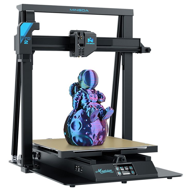 3D-принтер Mingda Magician Pro2 – настольный 3D-принтер со светодиодным индикатором температуры, цельнометаллическим хотендом, датчиком филамента, большой областью построения и низким уровнем шума.